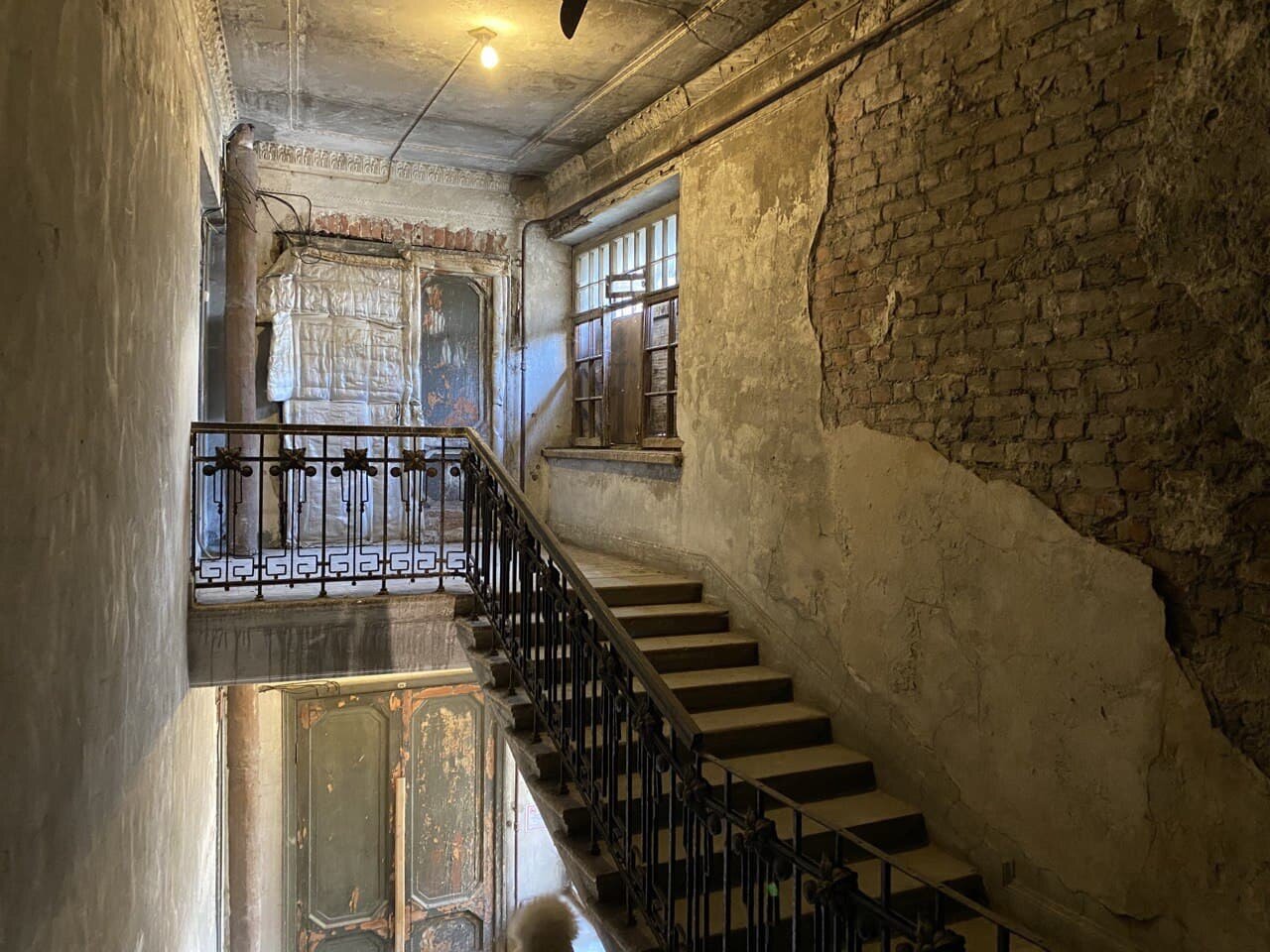 Лестницу для начала хотелось бы отреставрировать и сохранить, но какими силами это будет сделано, я не знаю. У нас в доме есть небольшая инициативная группа, но у всех руки опускаются, да и у меня иногда тоже — потому что разговариваешь [с представителями властей] как со стеной.