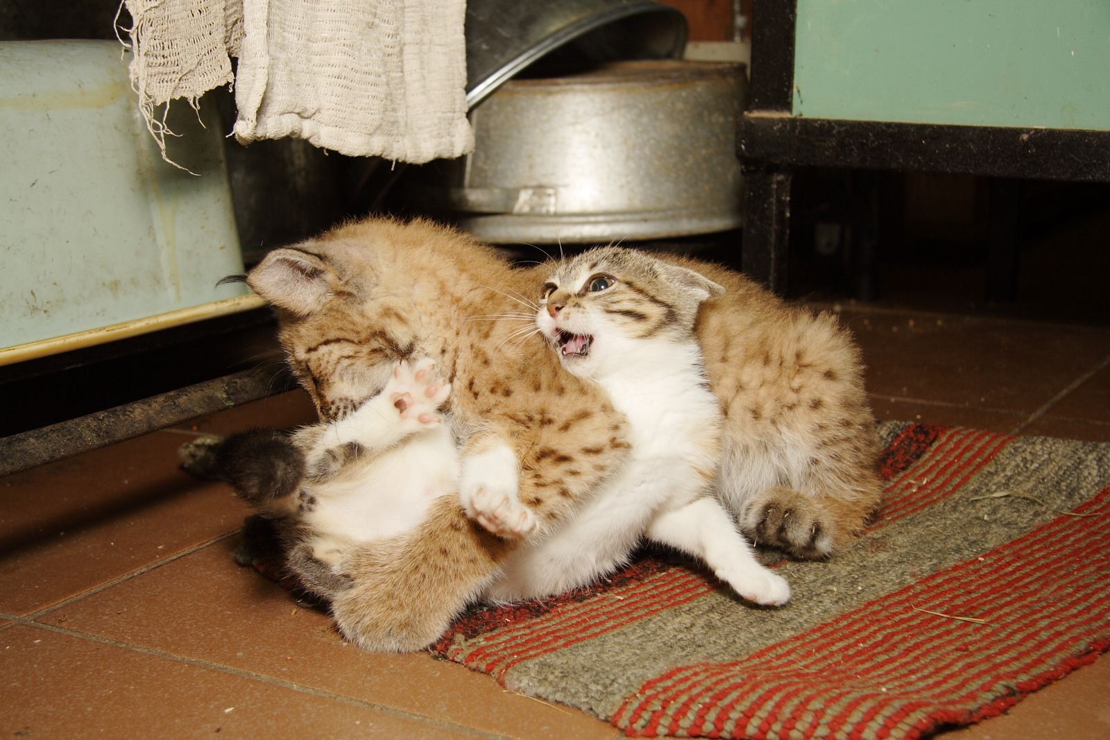 В первые дни котята общались под присмотром специалистов, так как сотрудники зоопарка опасались, что они могут не поладить. Животных ненадолго оставляли в одном помещении, чтобы они могли привыкнуть друг к другу и начать вместе играть.