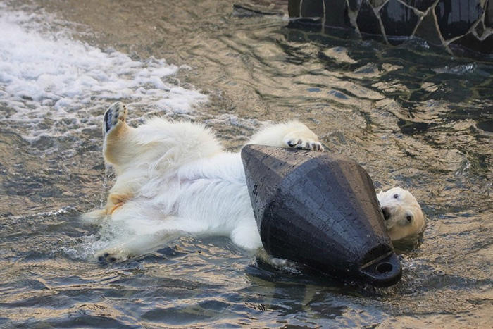 У меня еще не было такого умного белого медведя. Мы постоянно мастерим [для животных] какие-то игрушки, сооружаем завалы и прячем в них еду. Реакции типичные: раскопать завал, чтобы взять себе что-то вкусненькое. Хаарчаана, конечно, любит покушать, но для нее очень важны игрушки, и она активно ими манипулирует. Такой способности я еще ни у кого из наших медведей не наблюдала. За ней и правда интересно наблюдать.